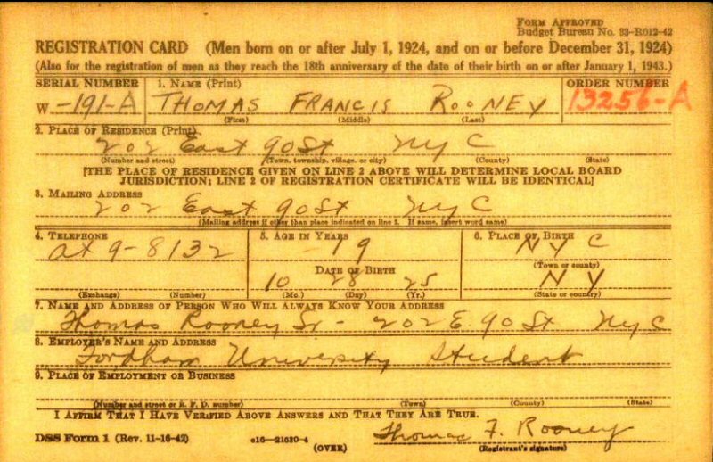 Son of Thomas C and Frances T (Sullivan) Rooney.