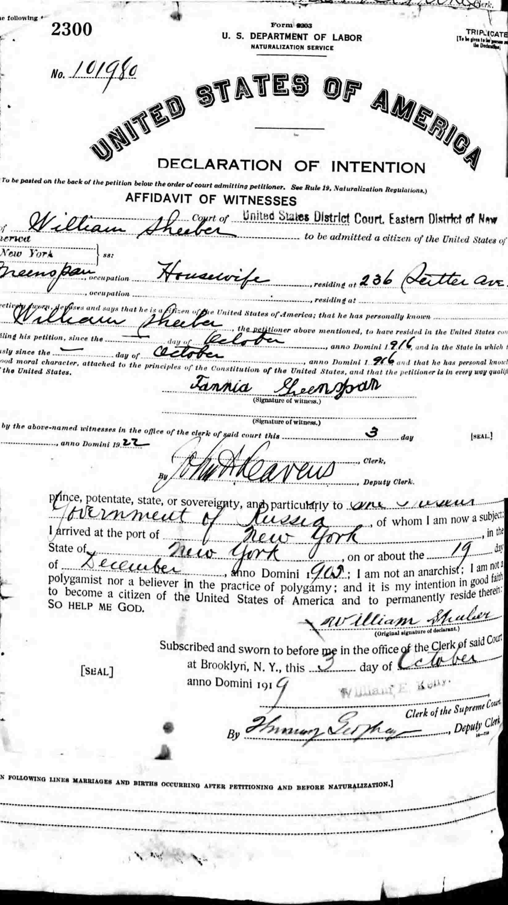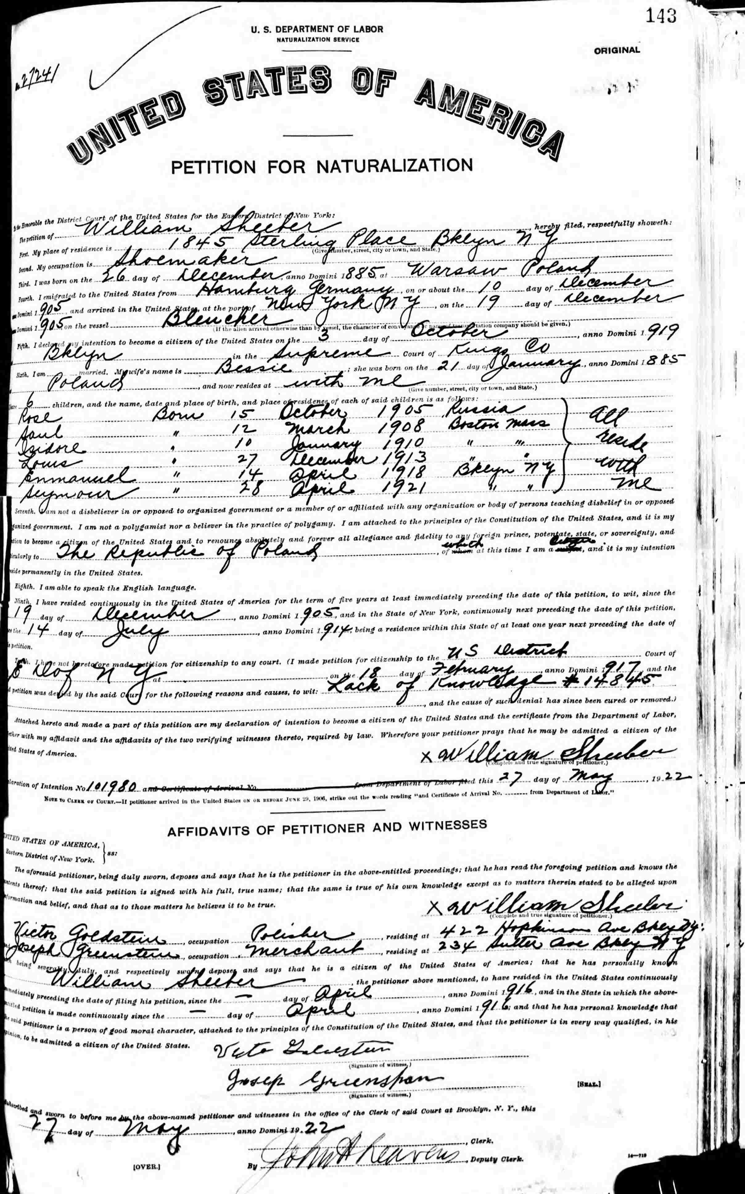 Second Petition For Naturalization: Mary 27, 1922.