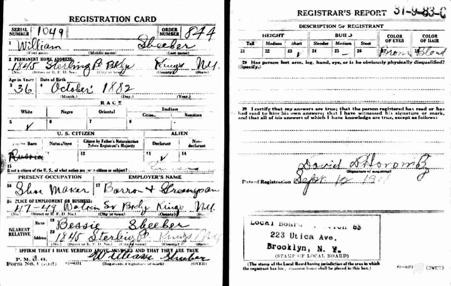 September 12, 1918 - 1845 Sterling Place, Brooklyn, Kings County, New York.