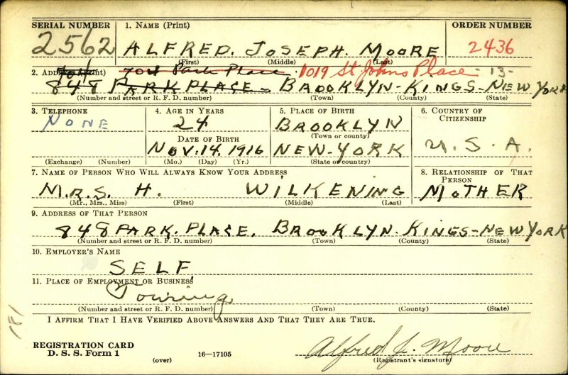 October 16, 1940 - 848 Park Place, Brooklyn, Kings County, New York.