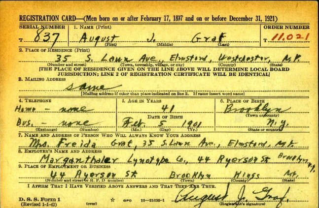 February 15, 1942 - 35 S Lawn Avenue, Elmston, Westchester County, New York.