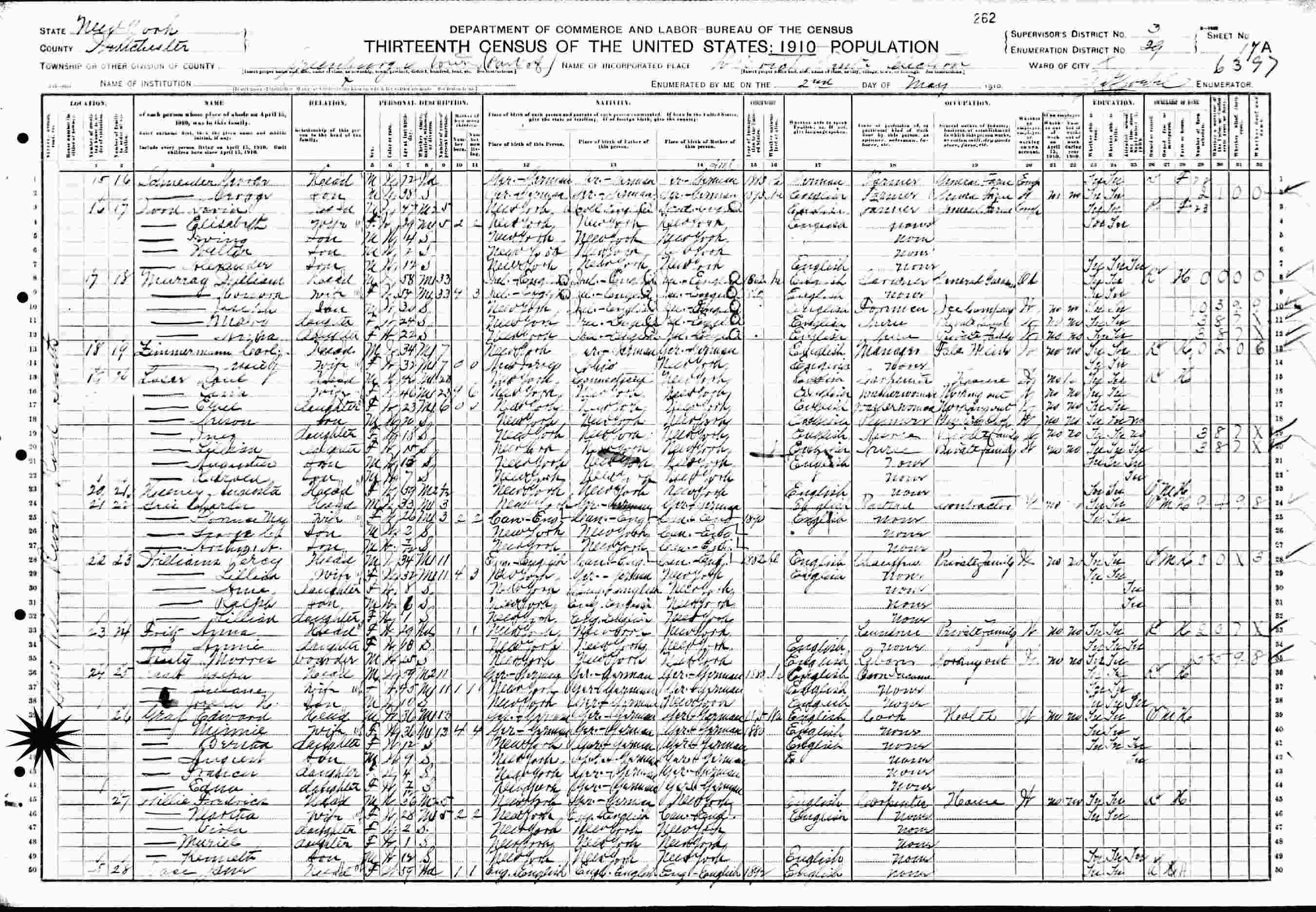 May 2, 1910 - San Milo River Road South, Supervisor's District 3, Enumeration District 29, Greenburgh, Westchester County, New York.