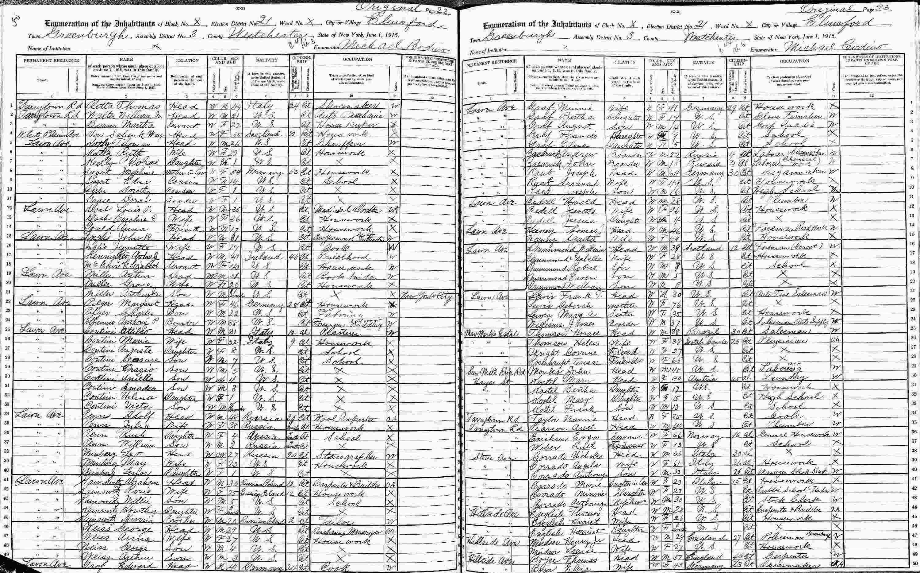 June 1, 1915 - New York State : Lawn Avenue, Assembly District 3, Election District 21, Greenburgh, Westchester County, New York.