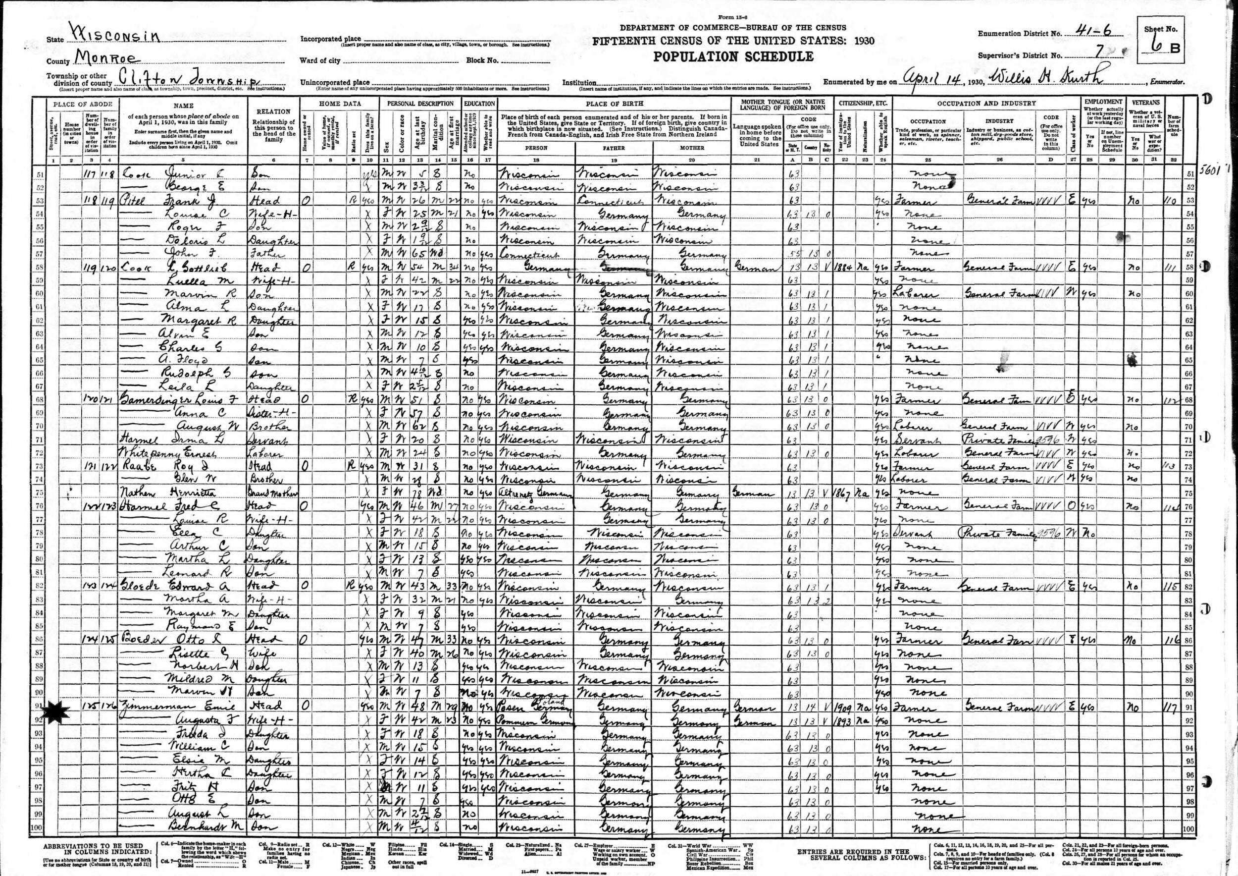 April 14, 1930 - Supervisor's District 7, Enumeration District 41-6, Clinton Township, Monroe County, Wisconsin.