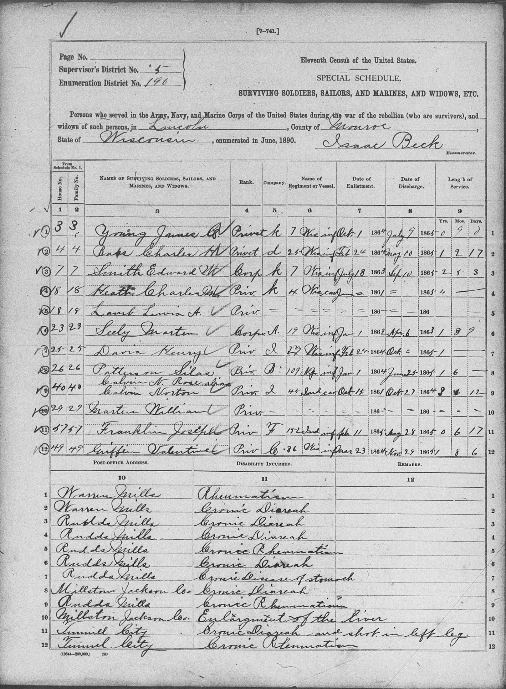 1890 - Lincoln Township, Monroe County, Wisconsin.