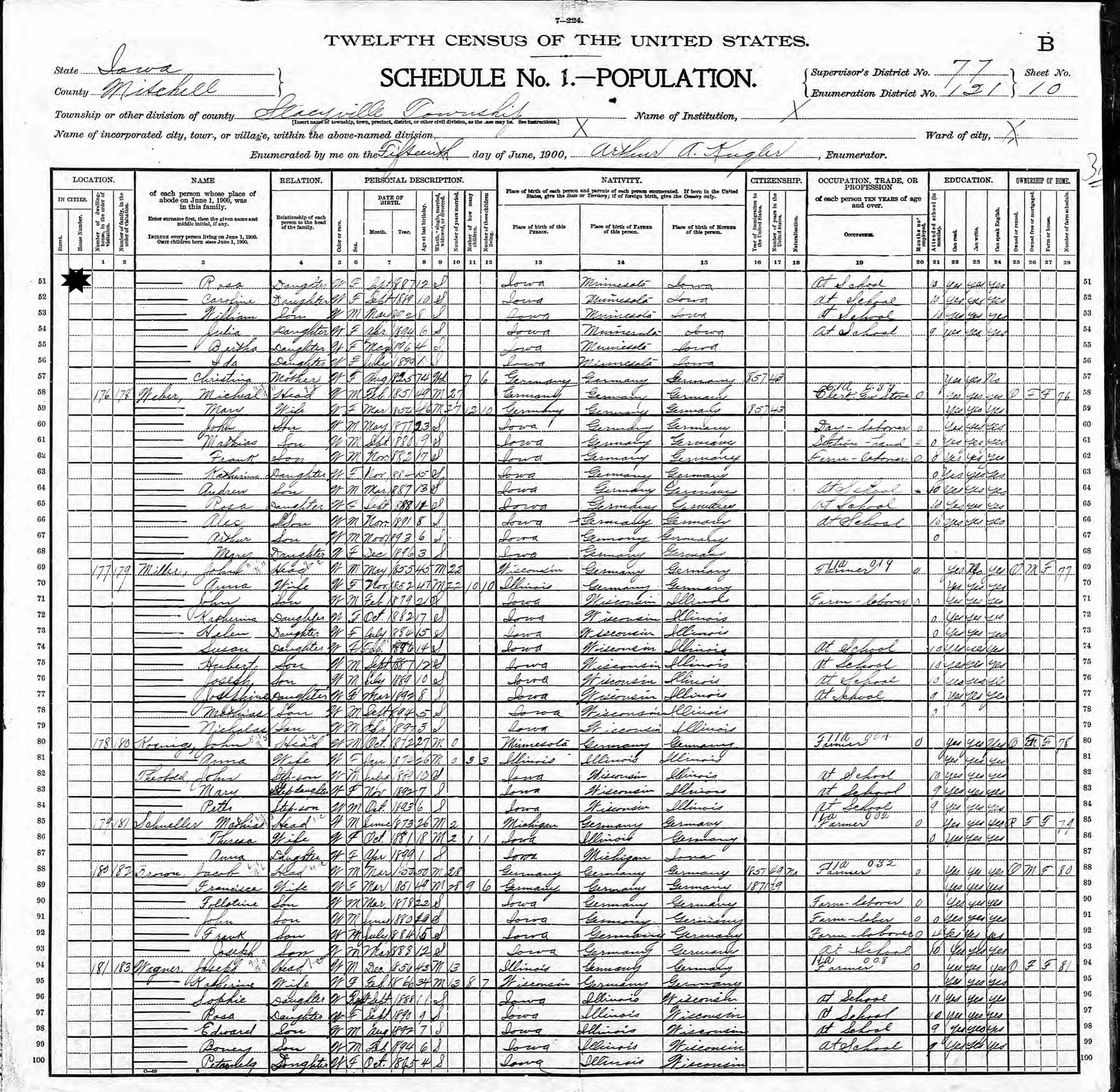June 15, 1900 - Supervisor's District 77, Enumeration District 121, Stacyville Township, Mitchell County, Iowa.