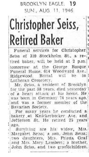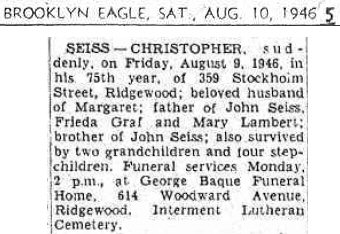 Died: August 9, 1946 in Kings County, New York (probably Brooklyn). (Certificate #15725.)