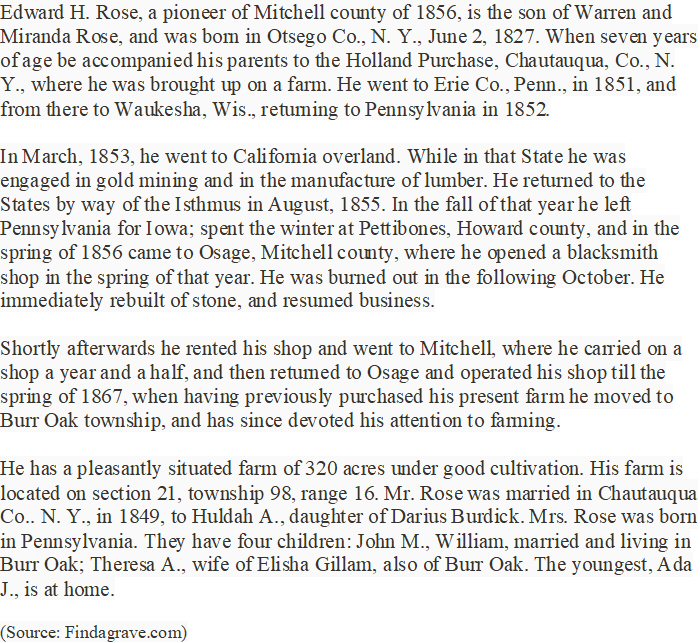 1885 - Iowa State - Burr Oak, Mitchell County, Iowa.