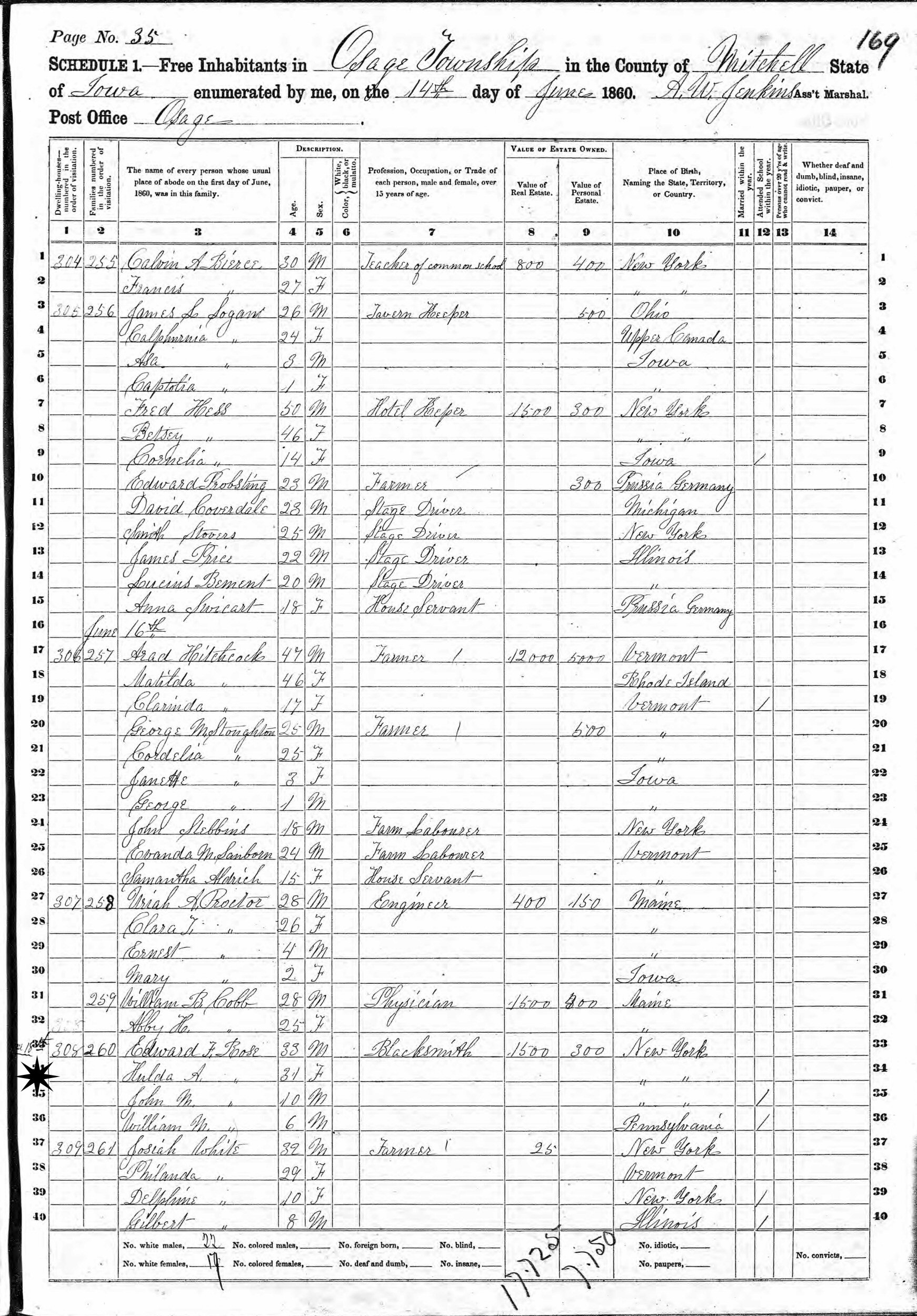 June 14, 1860 - Osage Township, Osage, Mitchell County, Iowa.