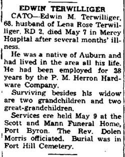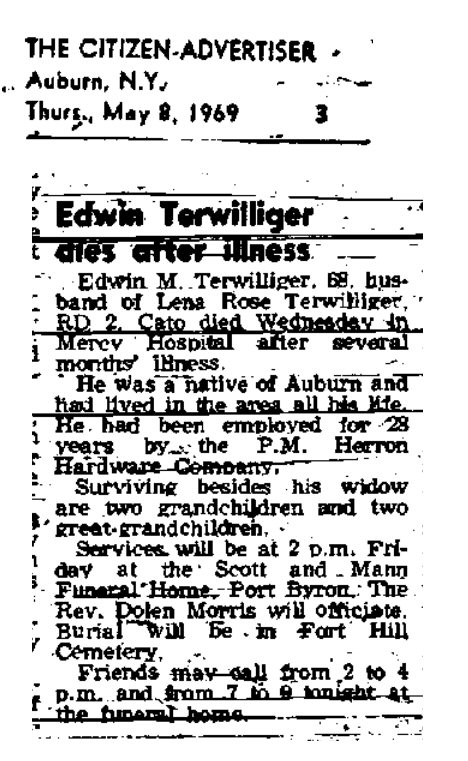 Notes for EDWIN MENZIE TERWILLIGER:
