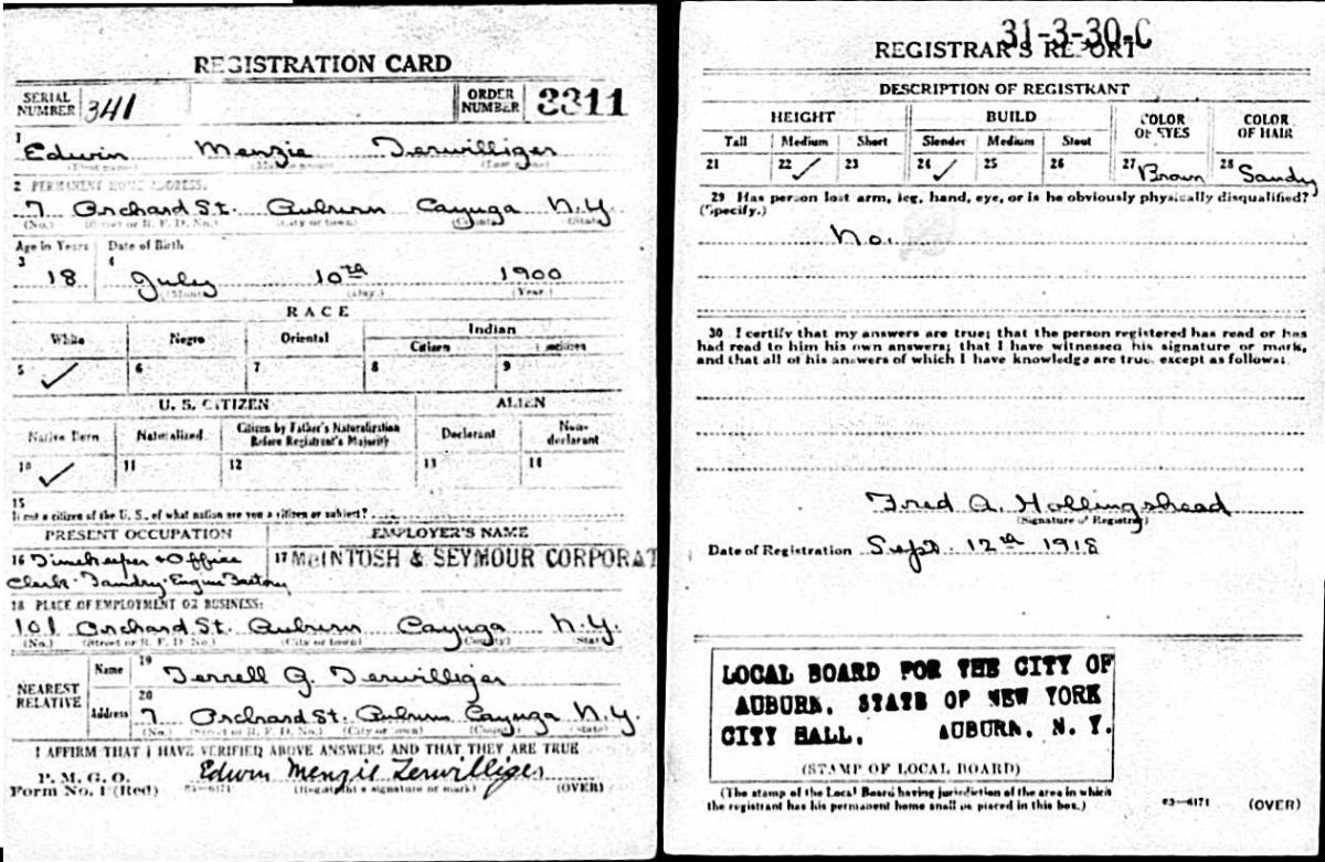 September 12, 1918 - 7 Orchard Street, Auburn, Cayuga County, New York.
