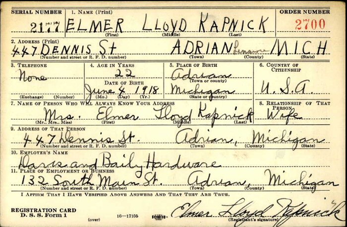 Notes for ELMER LLOYD KAPNICK: