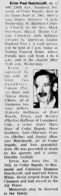 Died: June 24, 2001 in Cedar Rapids, Linn County, Iowa.