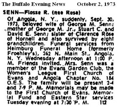 Married: George M Senn August 28, 1923 in Chautauqua County, New York.