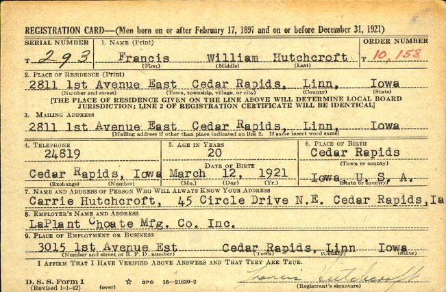 February 16, 1942 - 2811 1st Avenue East, Cedar Rapids, Linn County, Iowa.