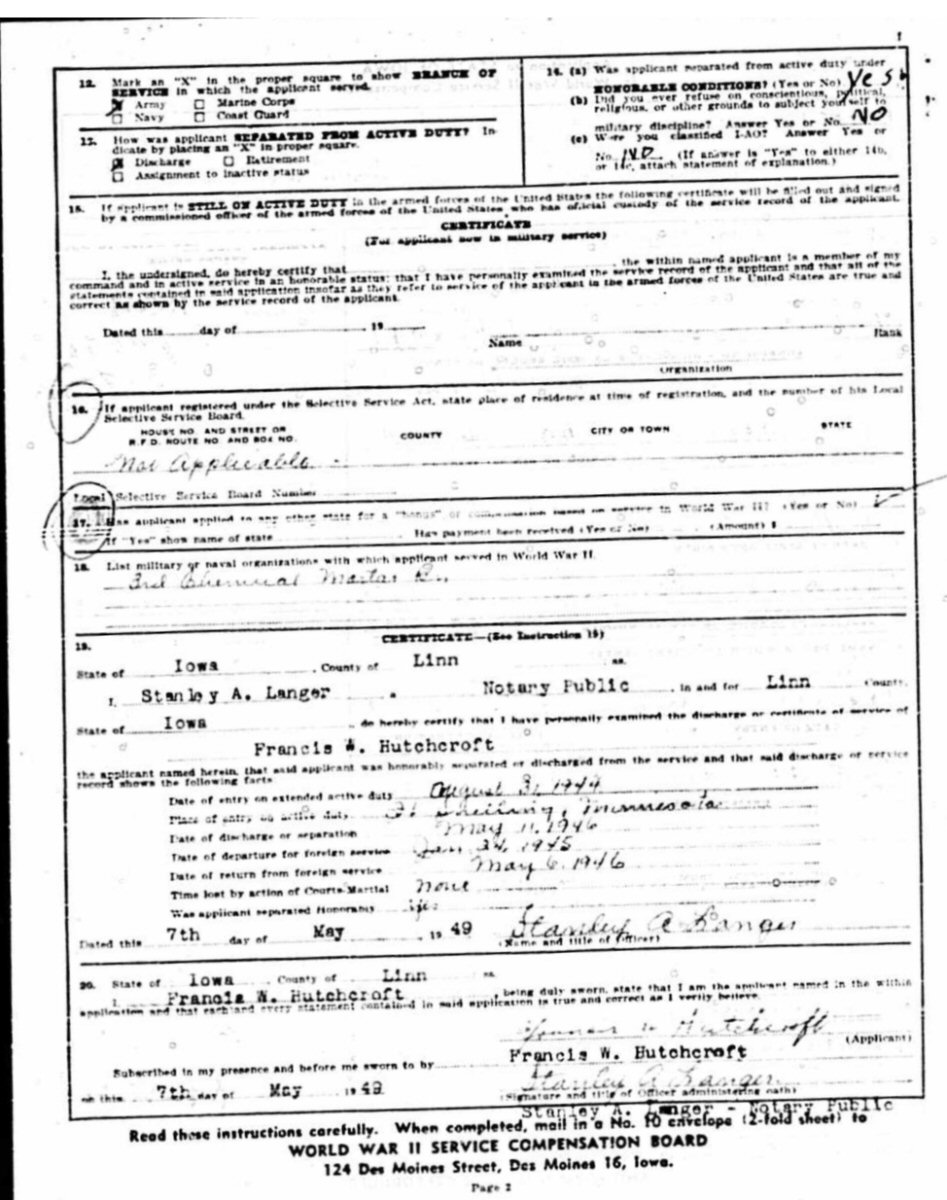 May 7, 1949 - Application for WWII Service Compensation.