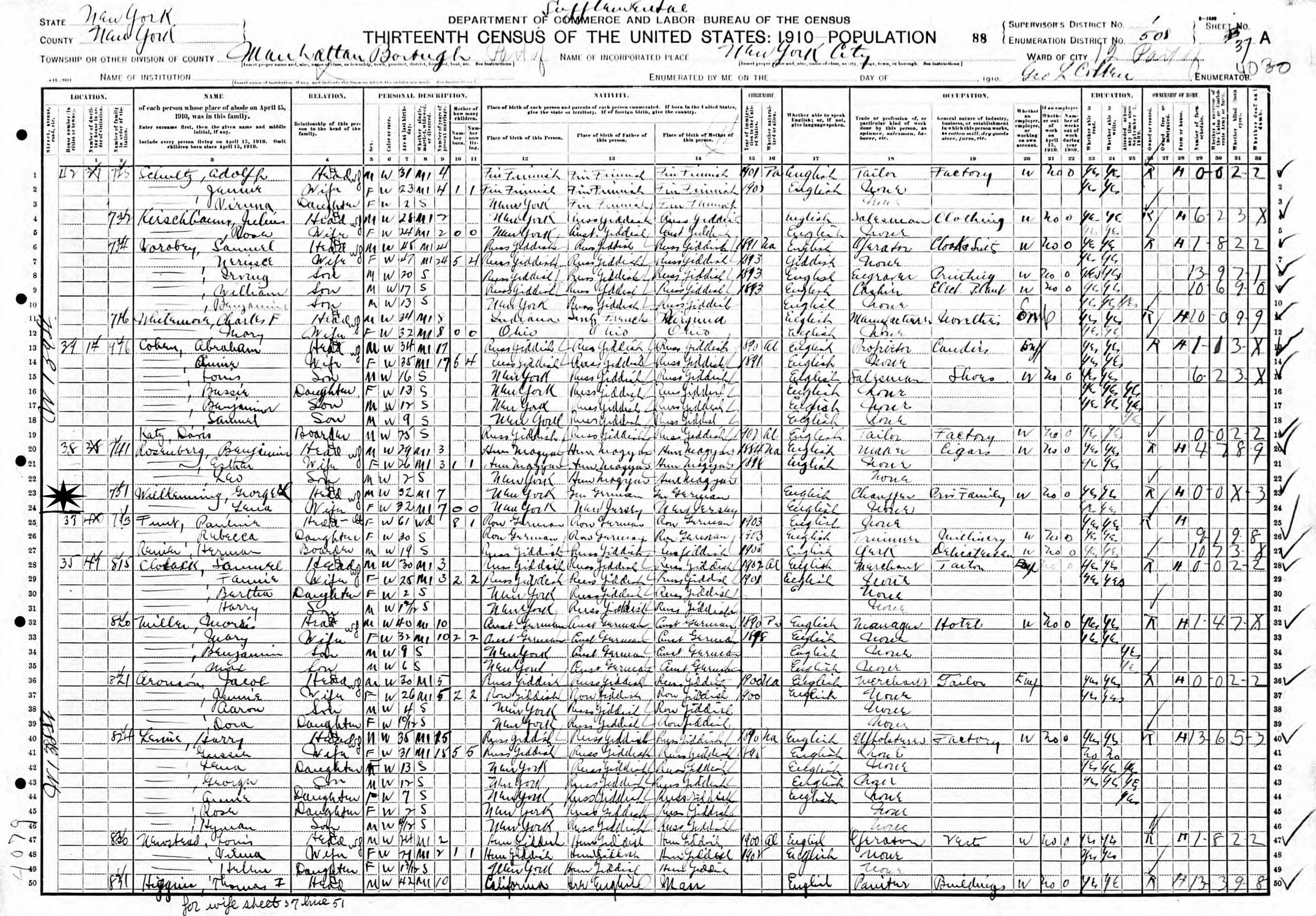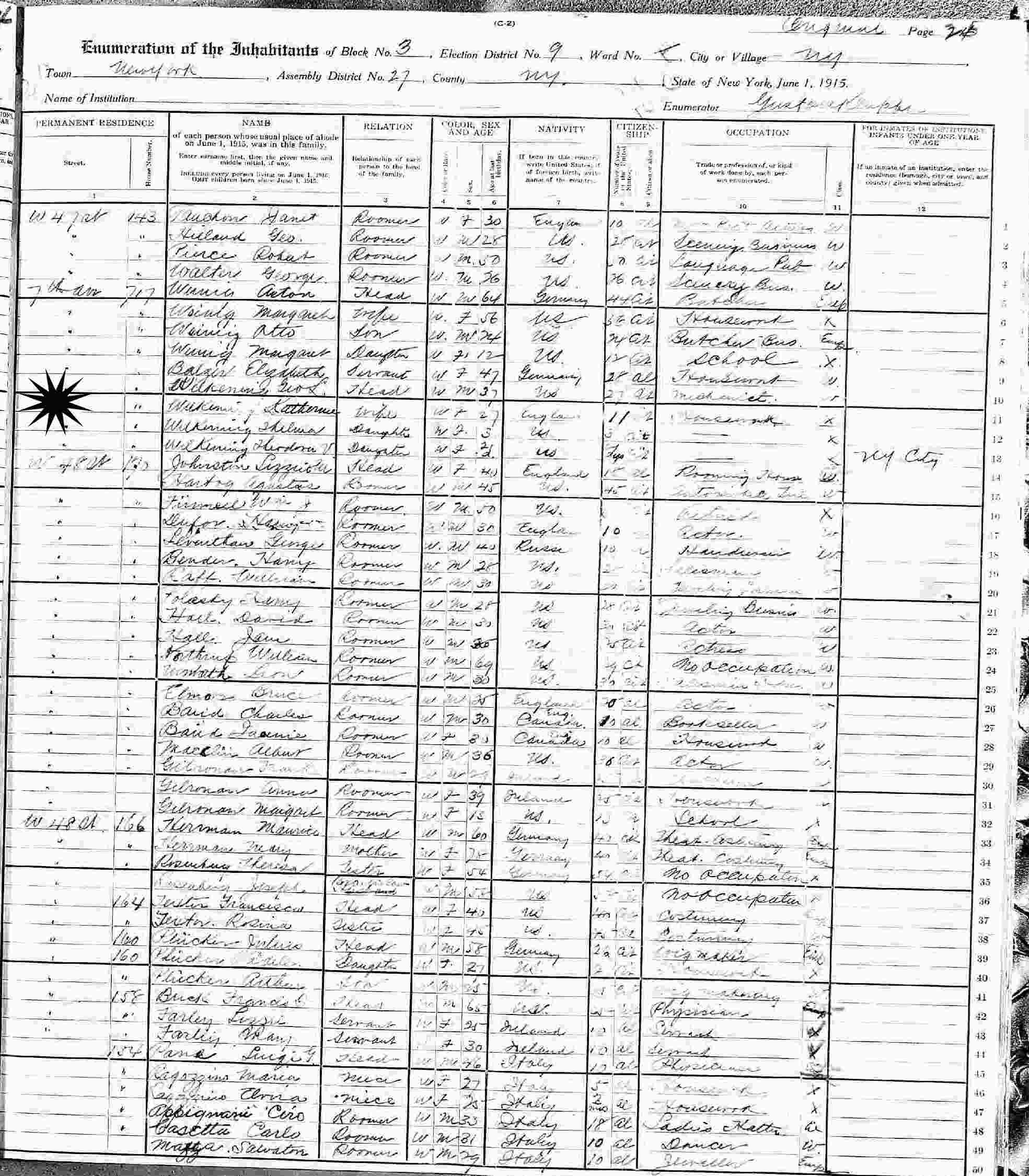 June 1 1915 - New York State - 717 7th Avenue, Block 3, Assembly District 27, Election District 9, New York, New York.