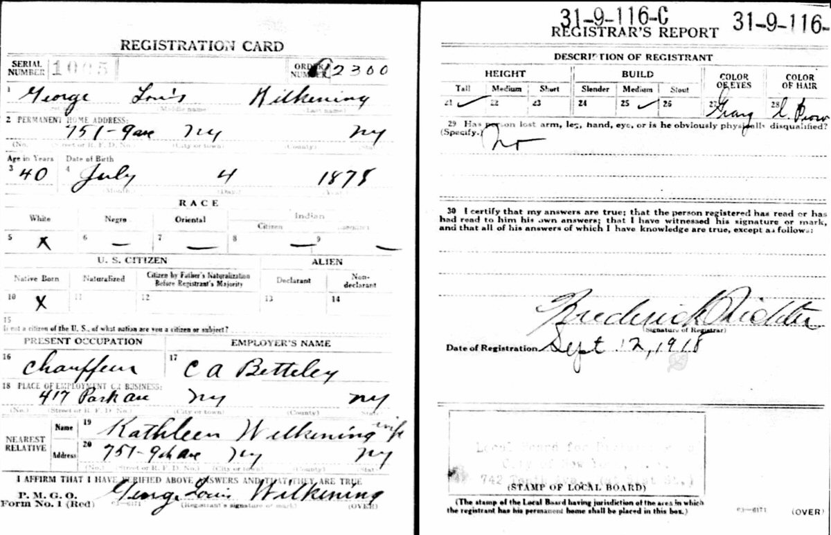 September 12, 1918 - WWI Draft Registration Date.