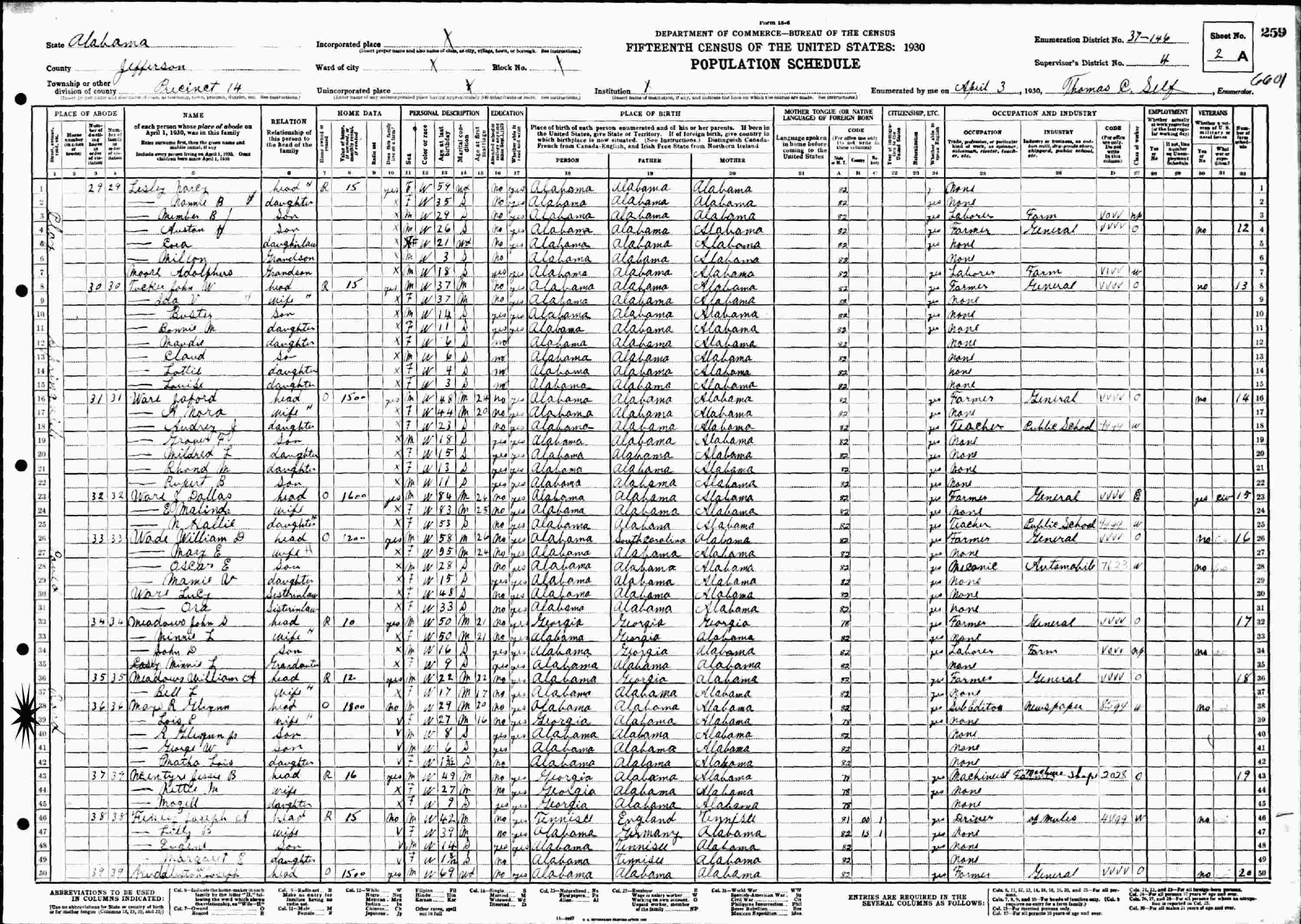 April 3, 1930 - Paula Road, Precinct 14, Supervisor's District 4, Enumeration District 37-136, Jefferson County, Alabama.