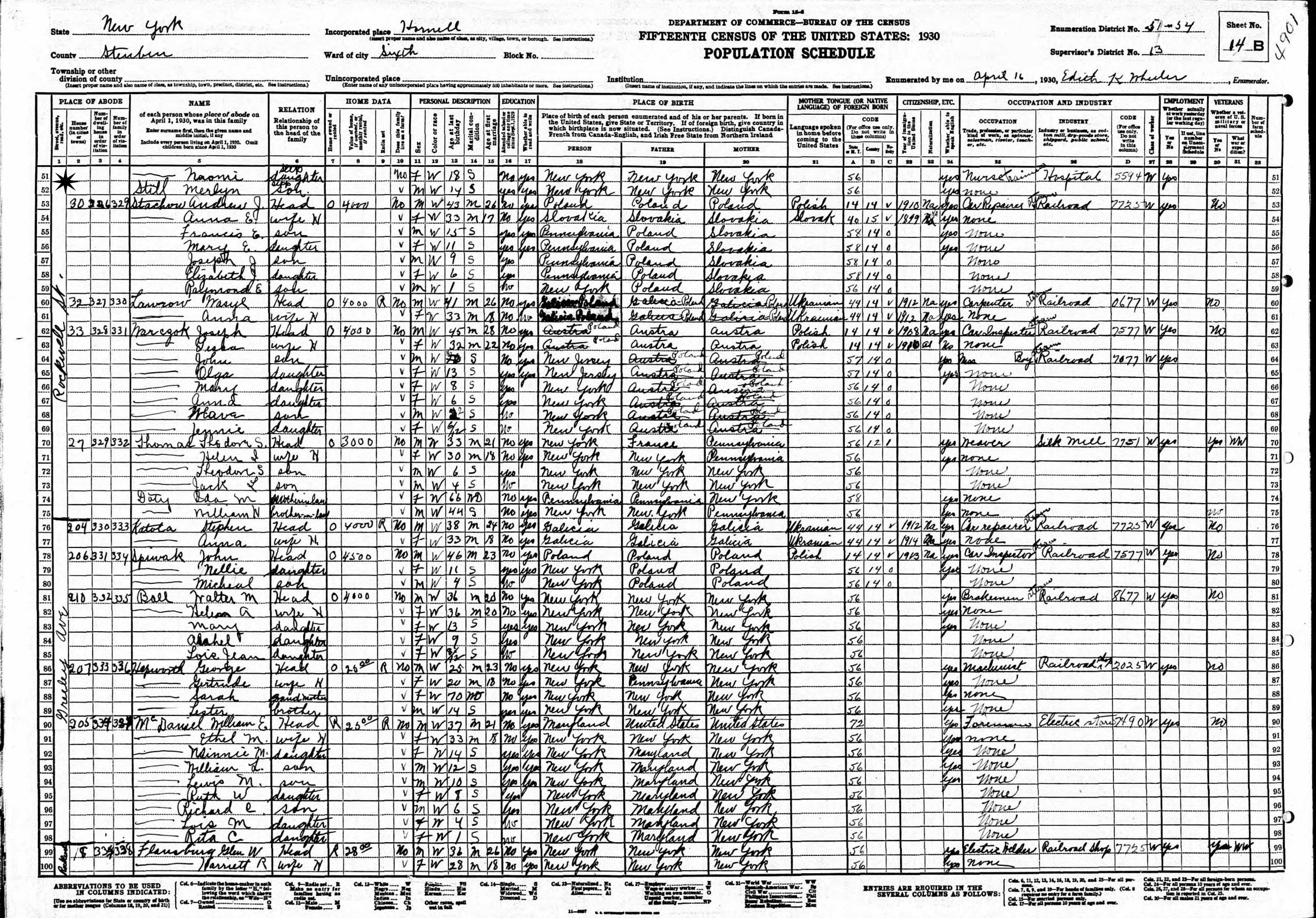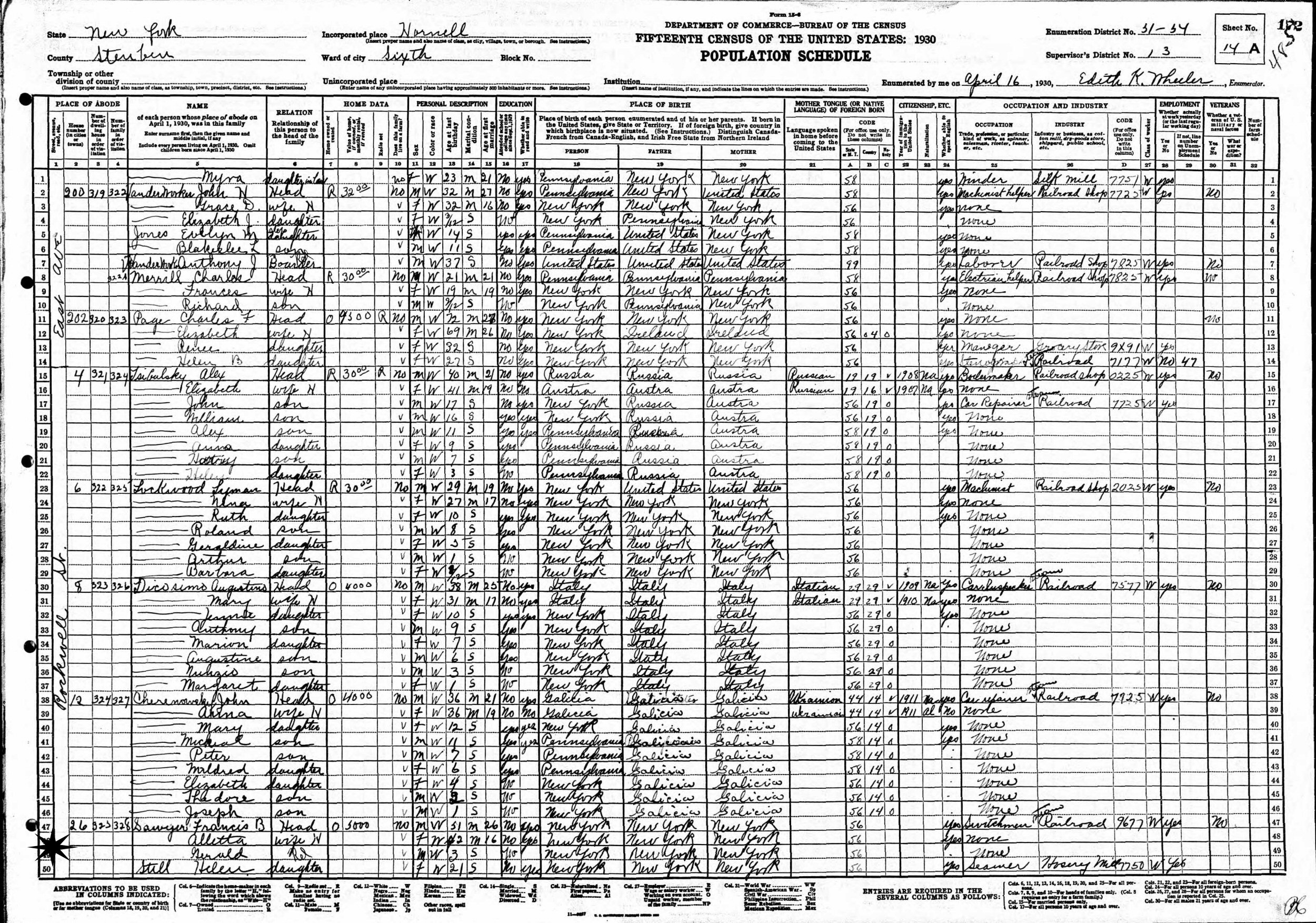 APril 16, 1930 - 26 Rockwell Street, Ward 6, Supervisor's District 13, Enumeration District 31-34, Hornell, Steuben County, New York.