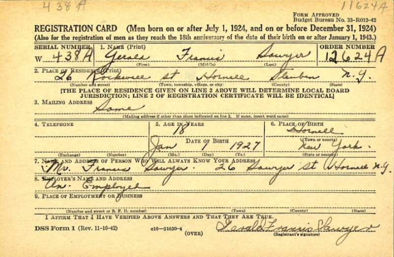 Notes for GERALD "JERRY" FRANCIS SAWYER: