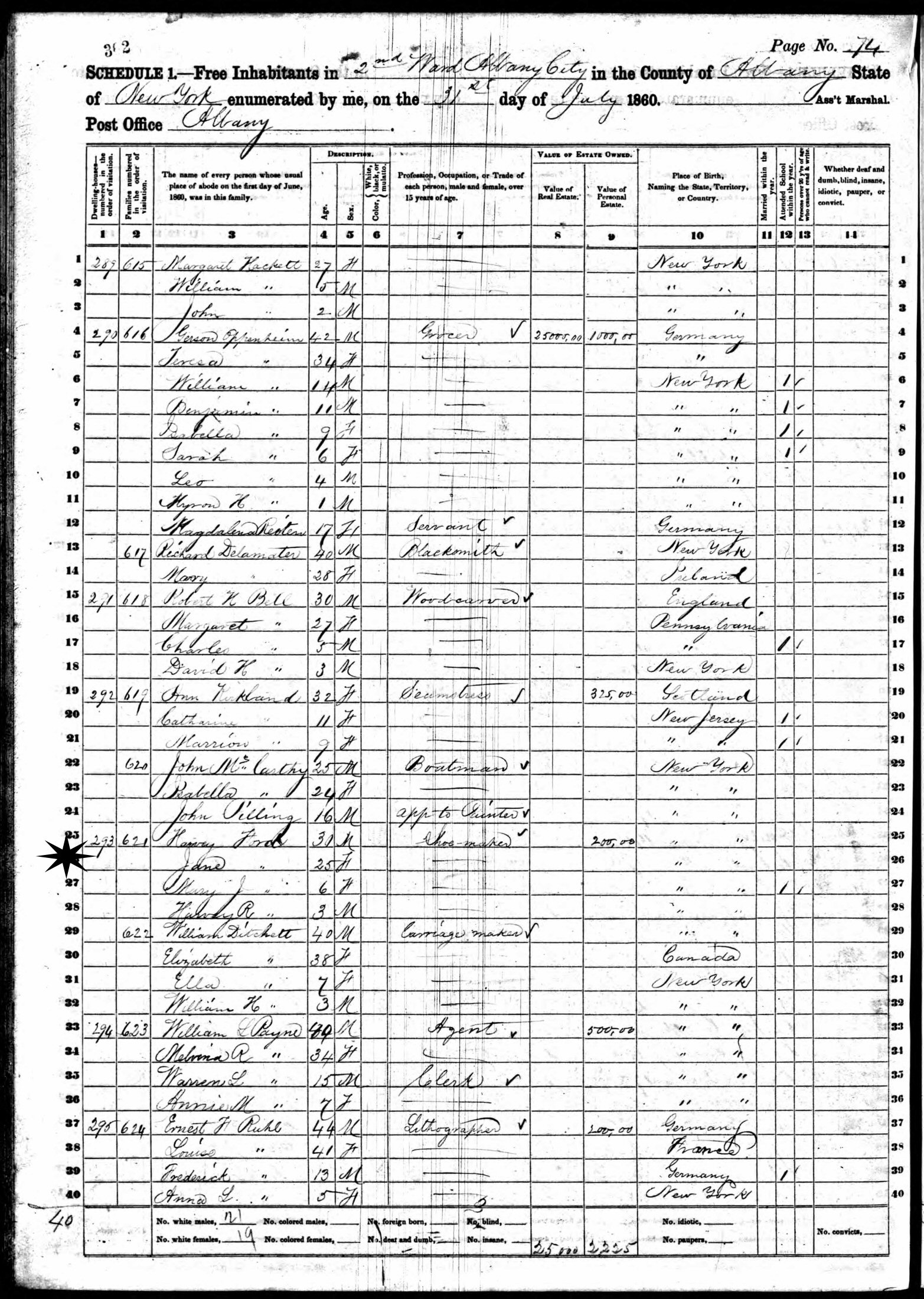 July 31, 1860 - Ward 2, Albany, Albany County, New York.