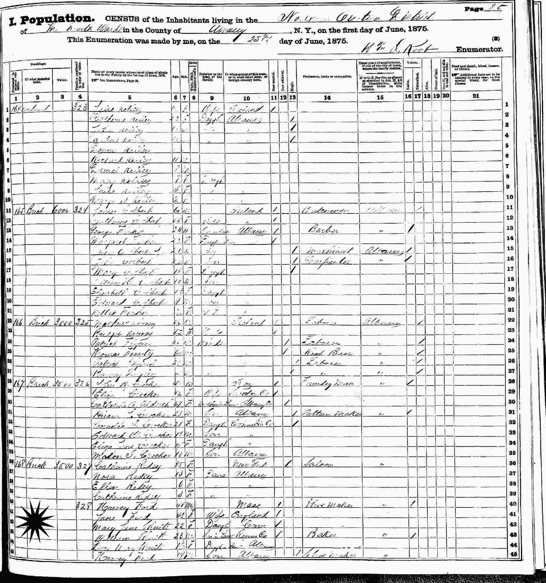 June 1, 1875 - New York State : Ward 4, Northern Enumeration District, Albany, Albany County, New York (w/parents).