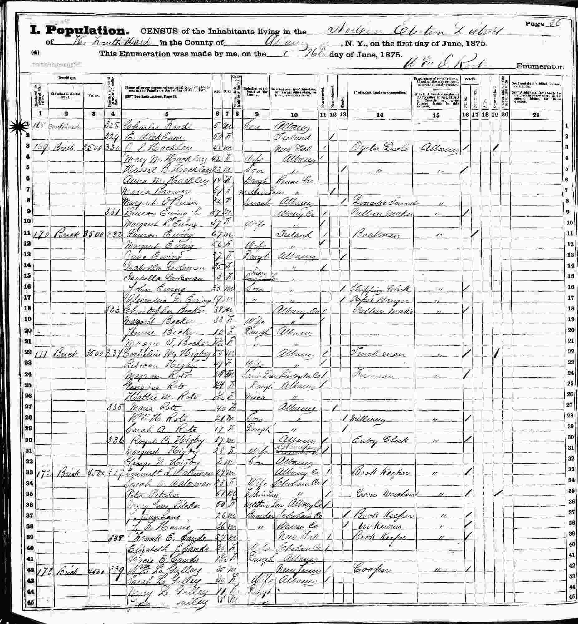 June 13, 1870 - Ward 20, Albany, Albany County, New York.