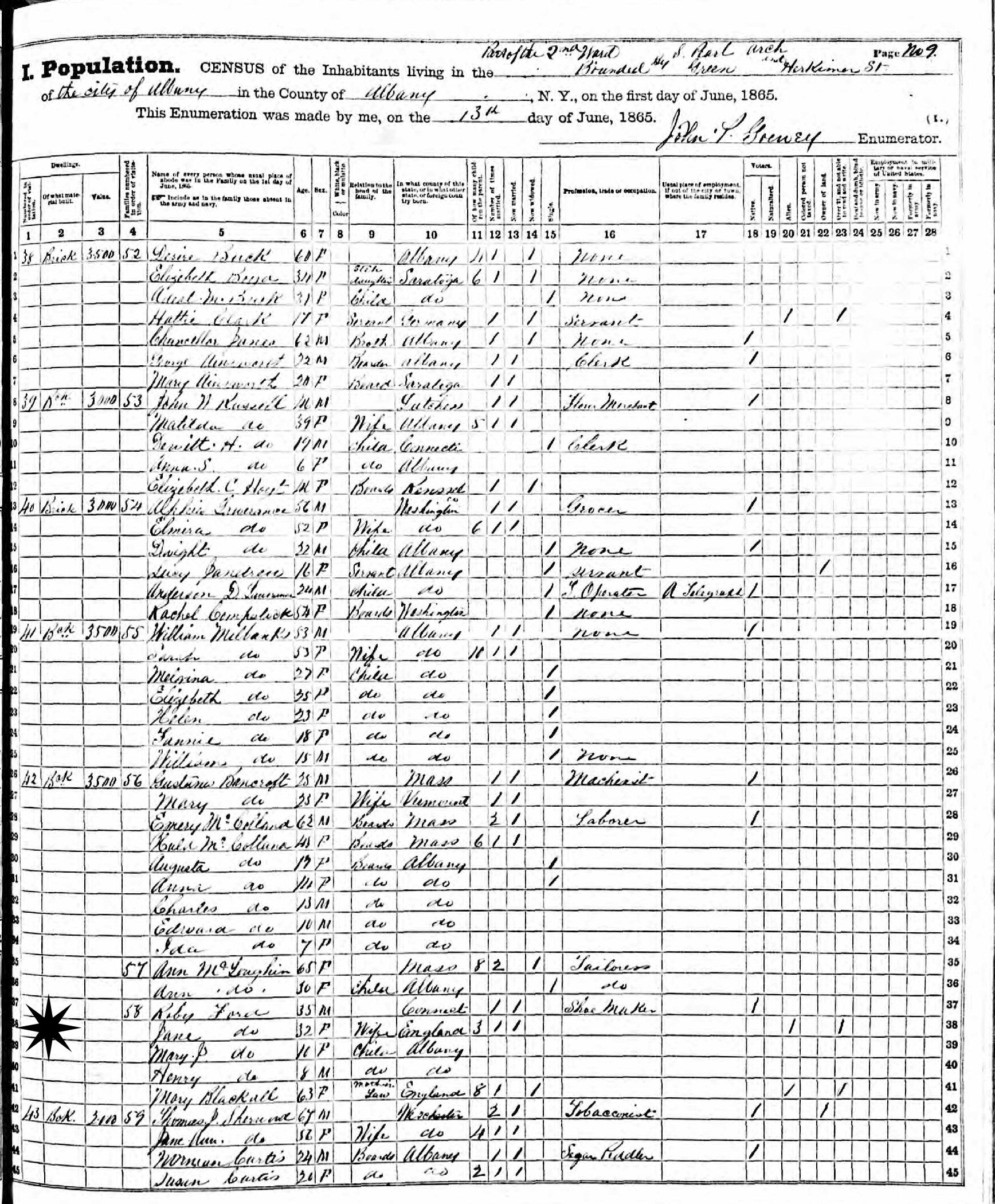 June 13, 1865 - 2nd Ward, Green and Herkimer Street, Albany, Albany County, New York.