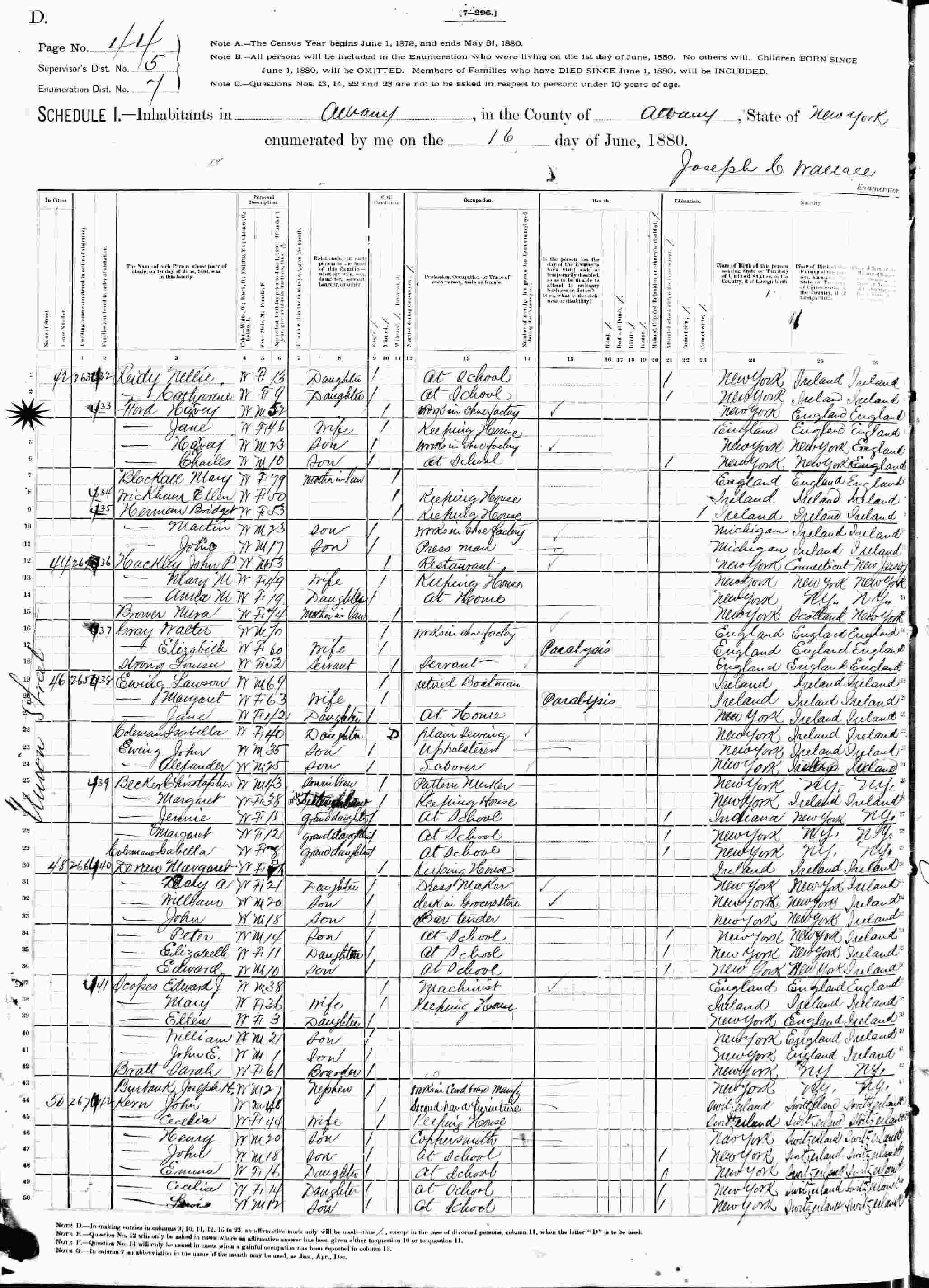 June 16, 1880 - 42 Union Street, Supervisor's District 5, Enumeration District 7, Albany, Albany County, New York.