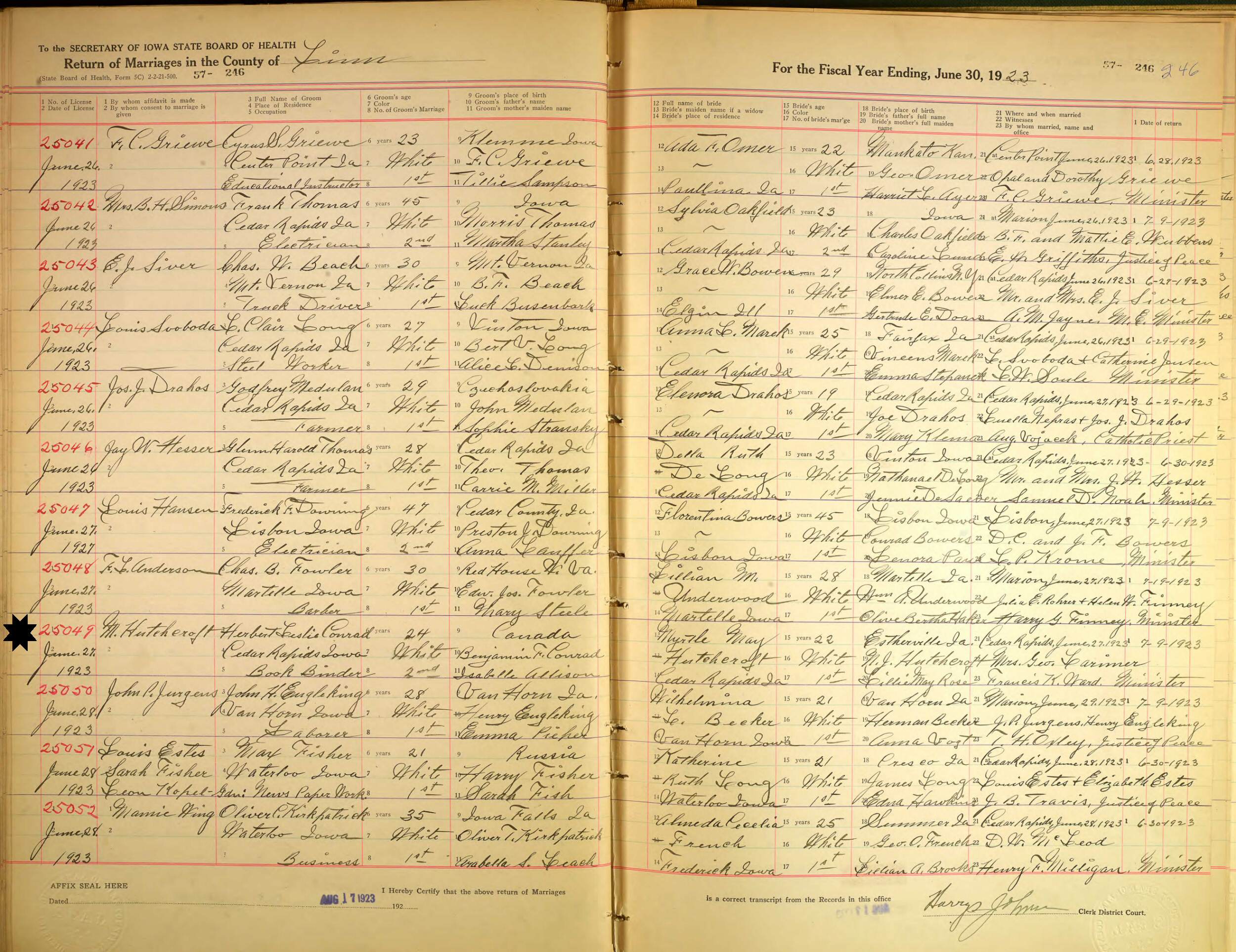 (2) Myrtle May Hutchcroft June 27, 1923 in Cedar Rapids, Linn County, Iowa.