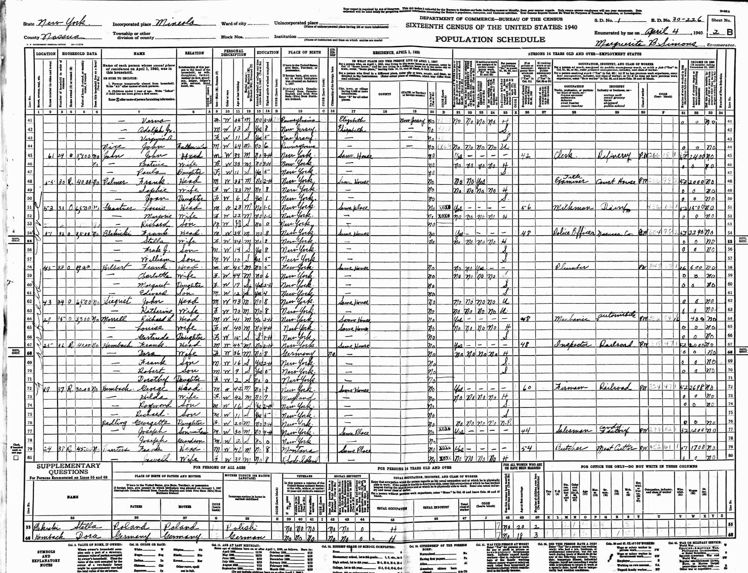April 4, 1940 - 61 Fairfield Avenue, Supervisor's District 1, Enumeration District 30-266, Mineola, Nassau County, New York.