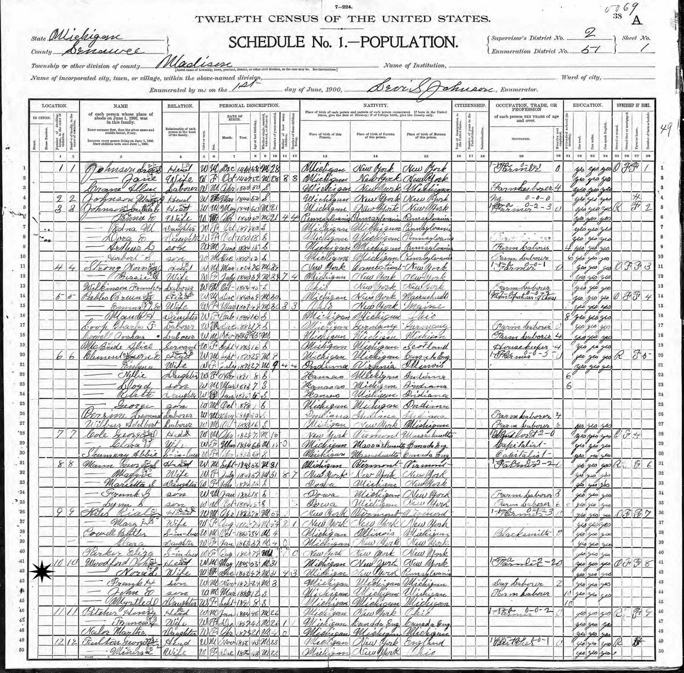 June 1, 1900 - Supervisor's District 2, Enumeration District 51, Madison, Hillsdale County, Michigan.