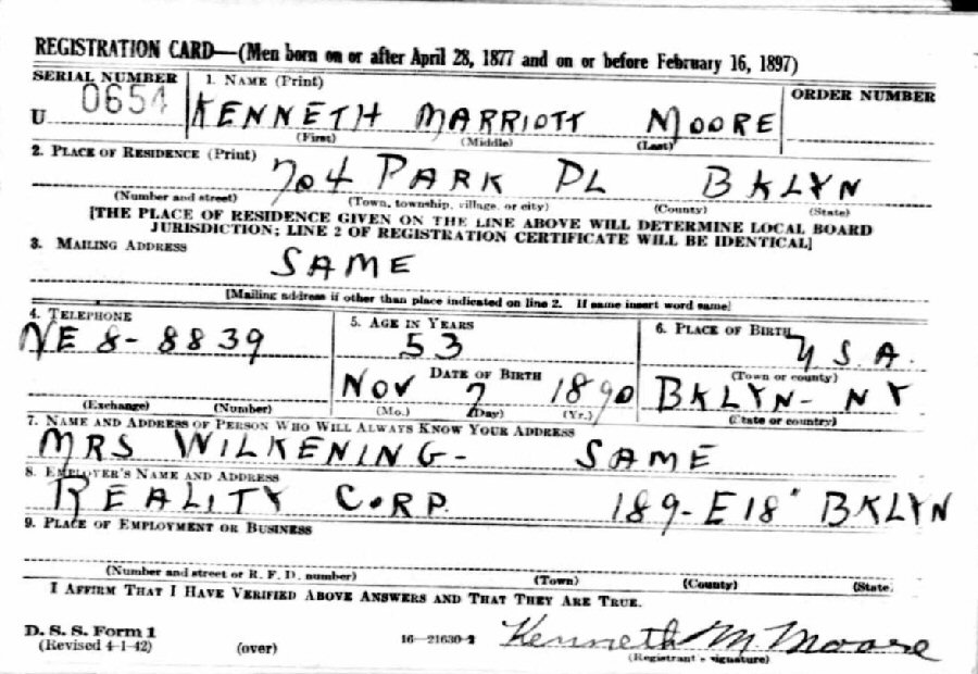 June 5, 1917 - 734A Maidson St, Brooklyn, Kings County, New York.