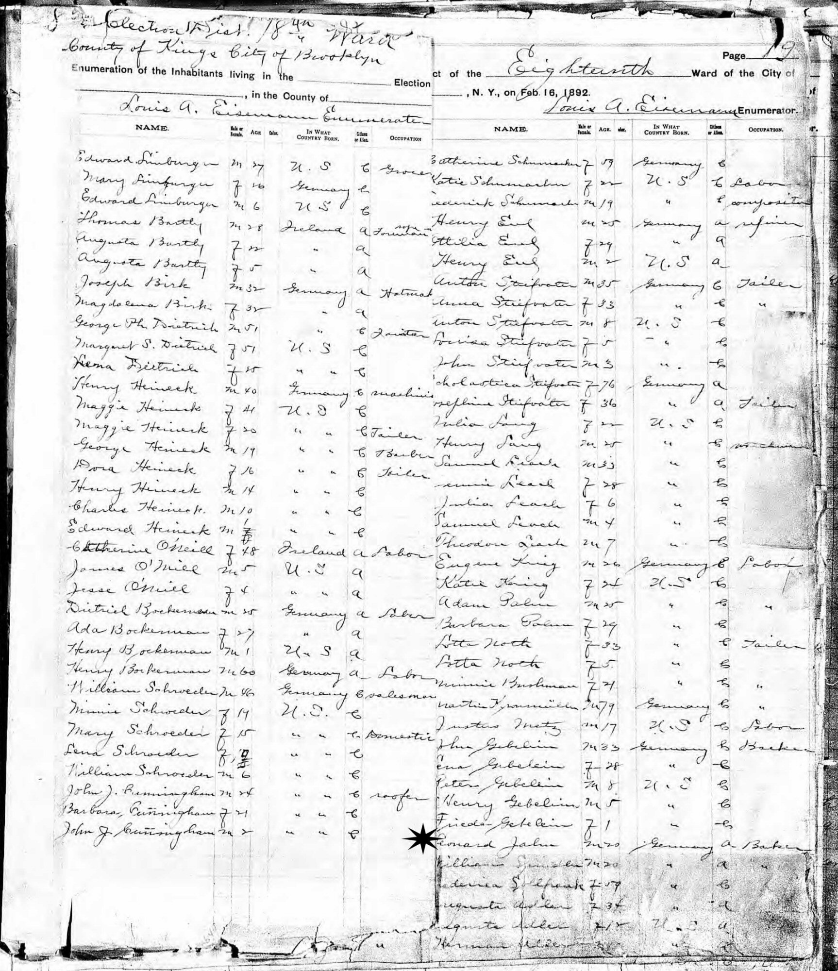 February 16, 1892 - Ward 18, Brooklyn, Kings County, New York.