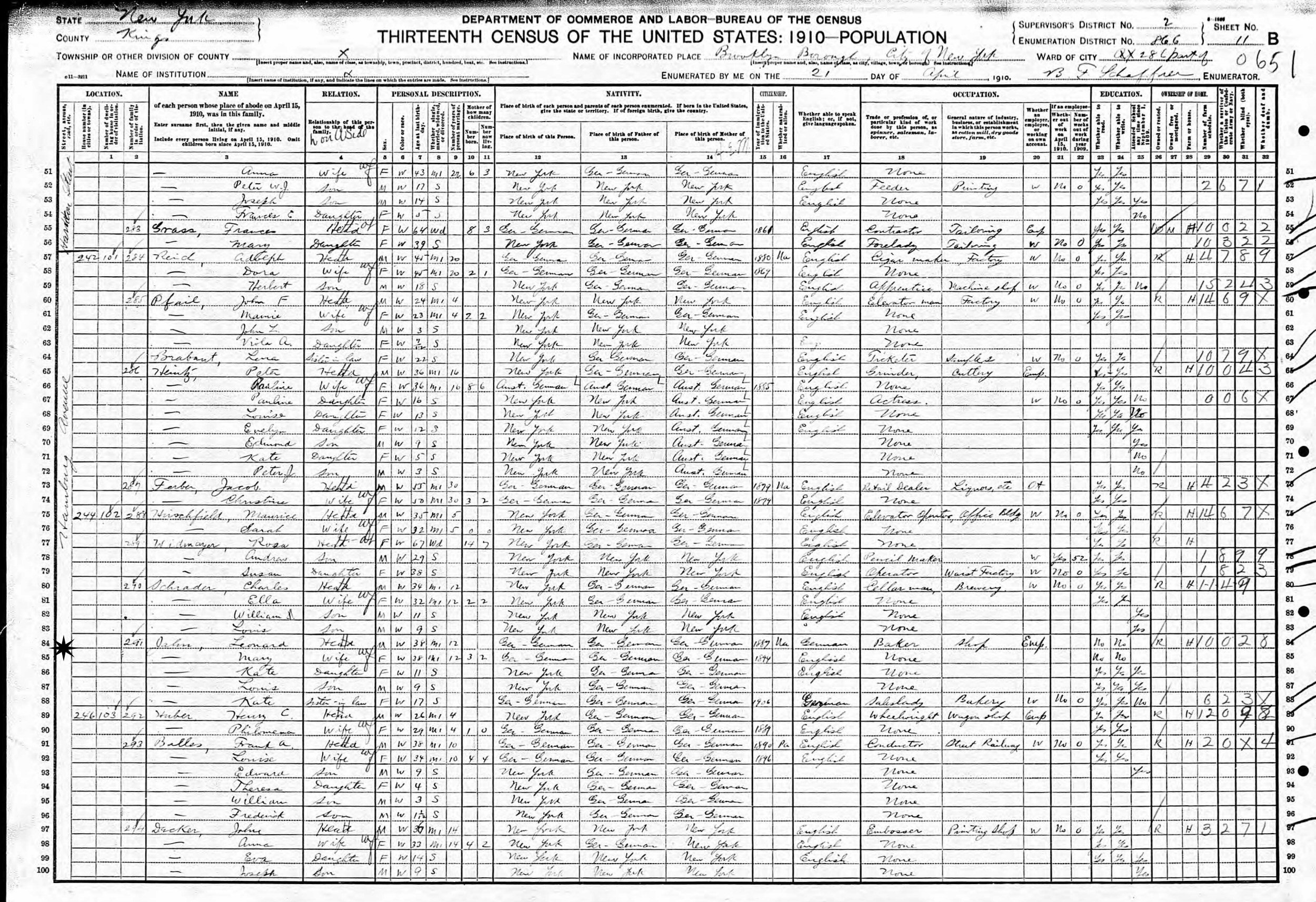 April 21, 1910 - 244 Hamburg Avenue, Assembly District 286, Supervisor's District 2, Enumeration District 866, Brooklyn, Kings County, New York.