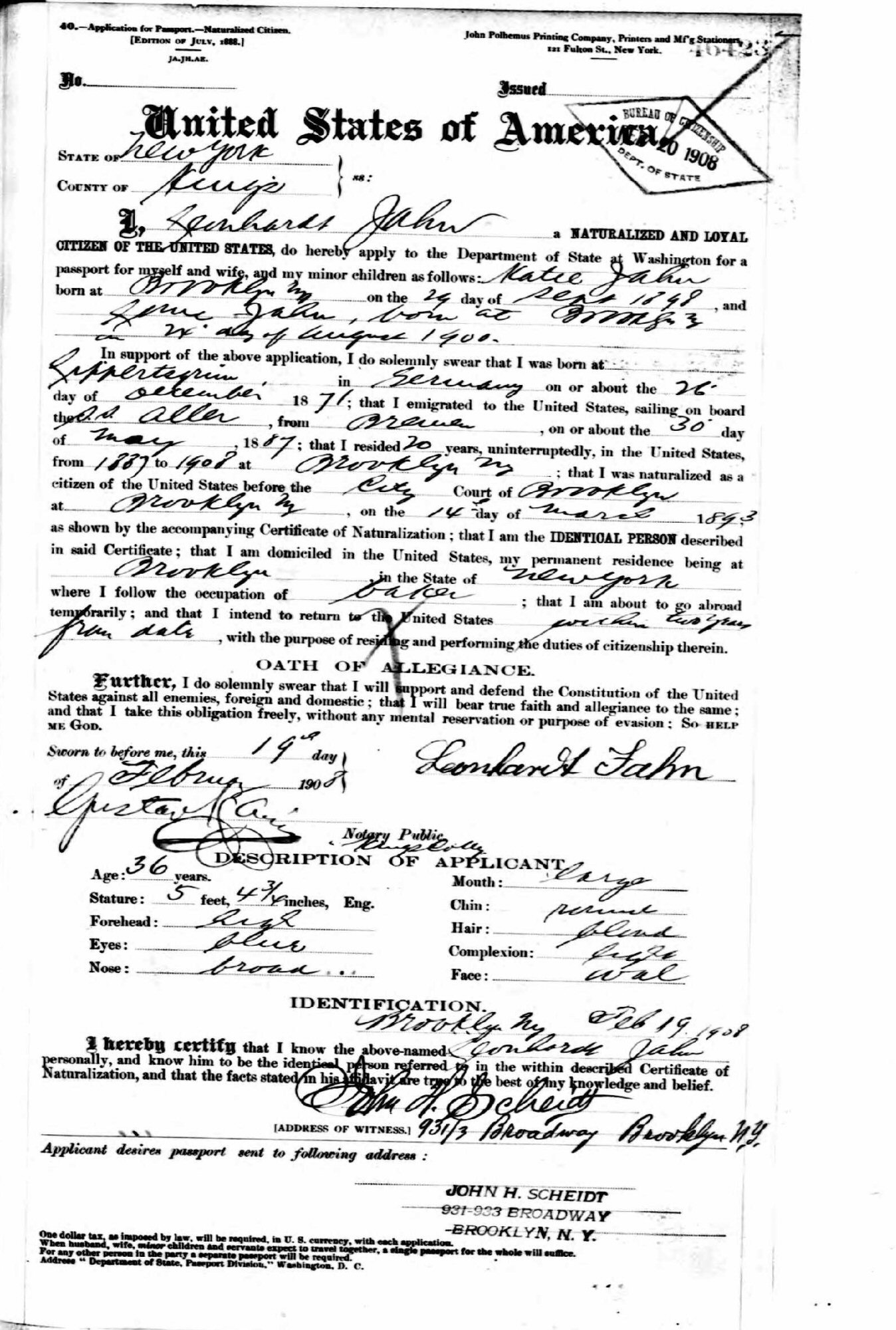 Naturalization: March 14, 1893 in City County, Brooklyn, Kings County, New York.