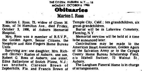 Notes for MARION INA BROWN ROSS: