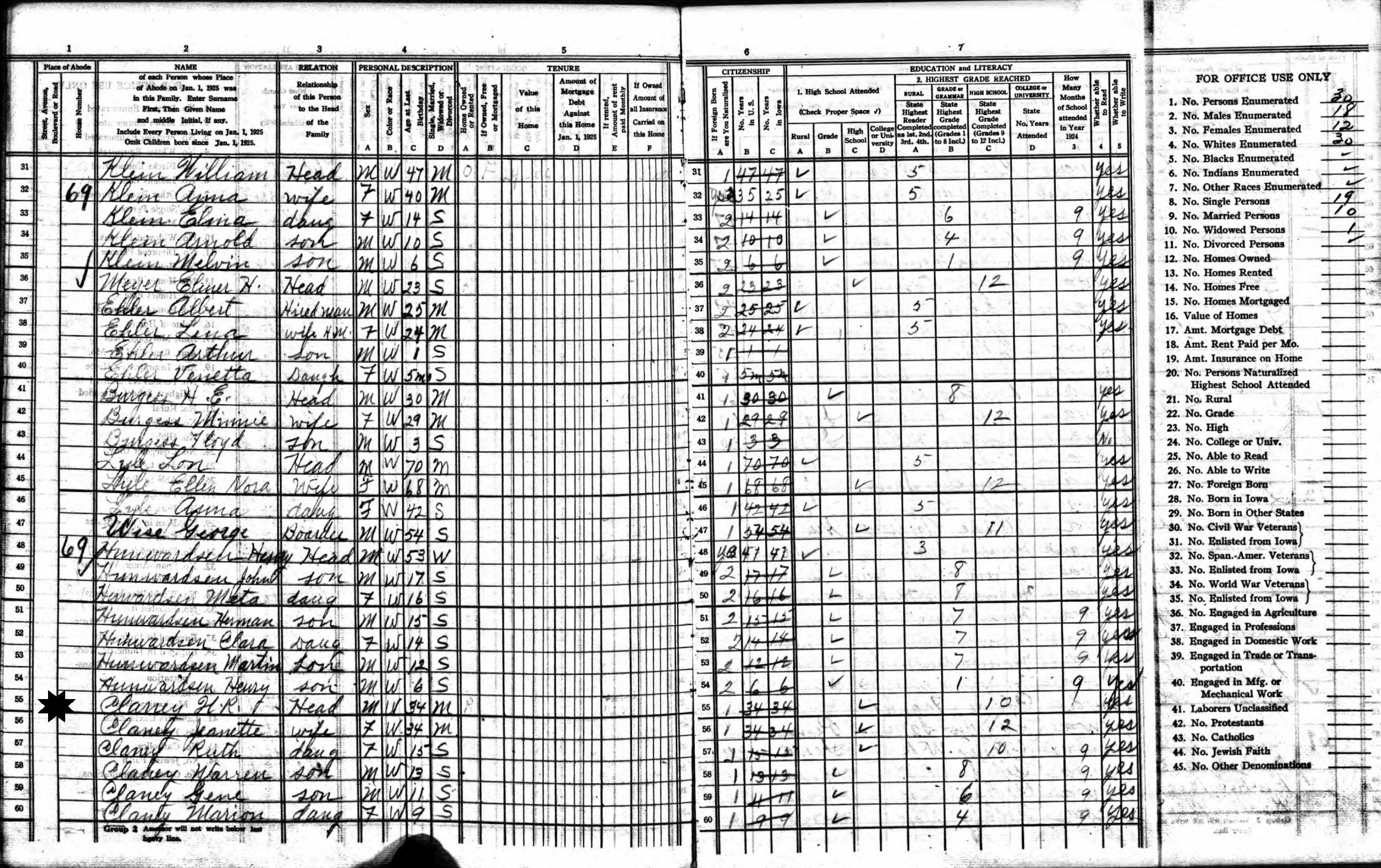 January 1, 1925 - Iowa State - Dayton, Cedar County, Iowa.