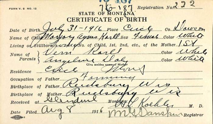 Born: July 31, 1916 in Circle, Dawson County, Montana.