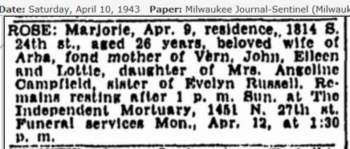 Died: April 9, 1943 in Milwaukee, Milwaukee County, Wisconsin.