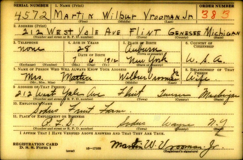 Son of Martin Wilbur and Florence Hazel (Rose) Vrooman, Sr.