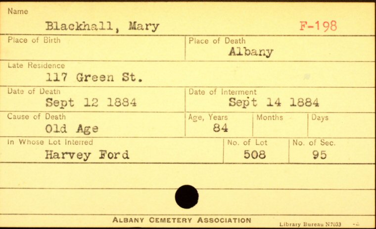 Last Residence: 117 Green Street, Albany, Albany County, New York.