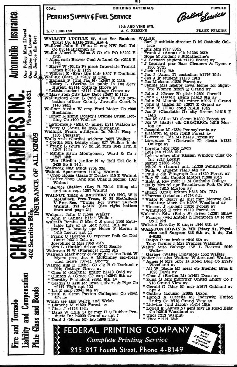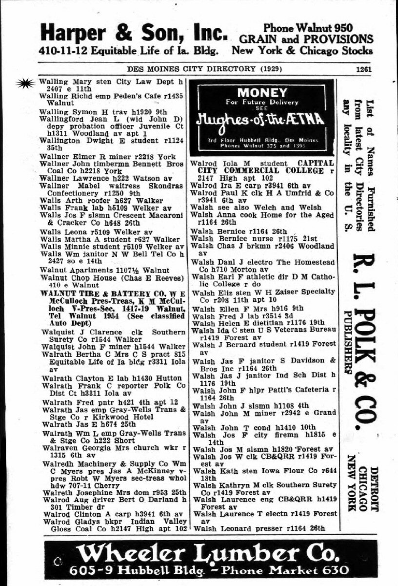 AKA: Went by Walling in 1929 and 1934 Des Moines City Directory.