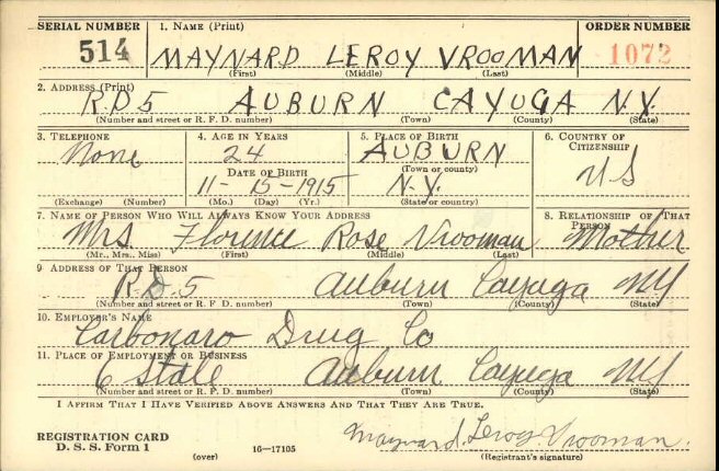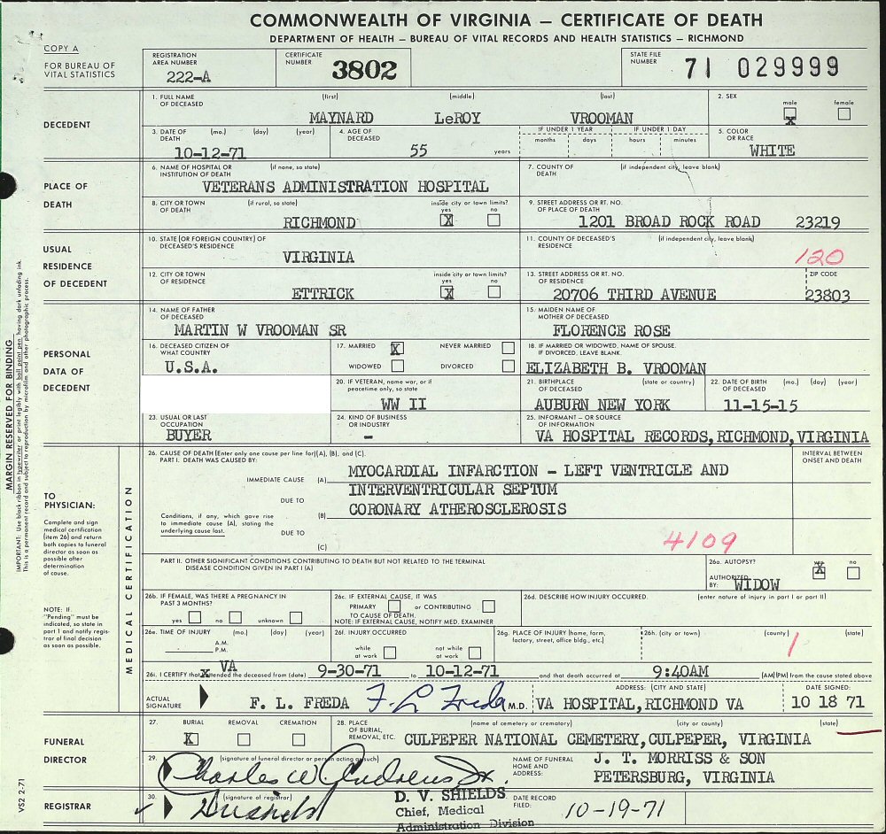 Notes for MAYNARD LEROY VROOMAN: