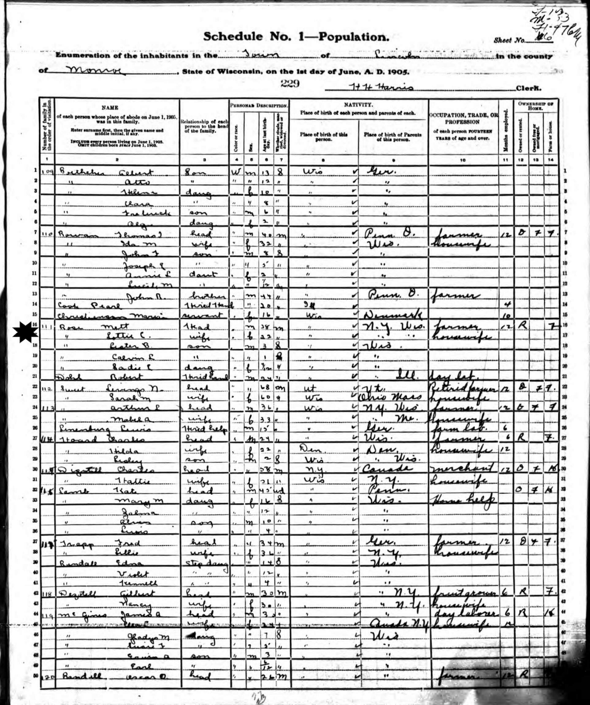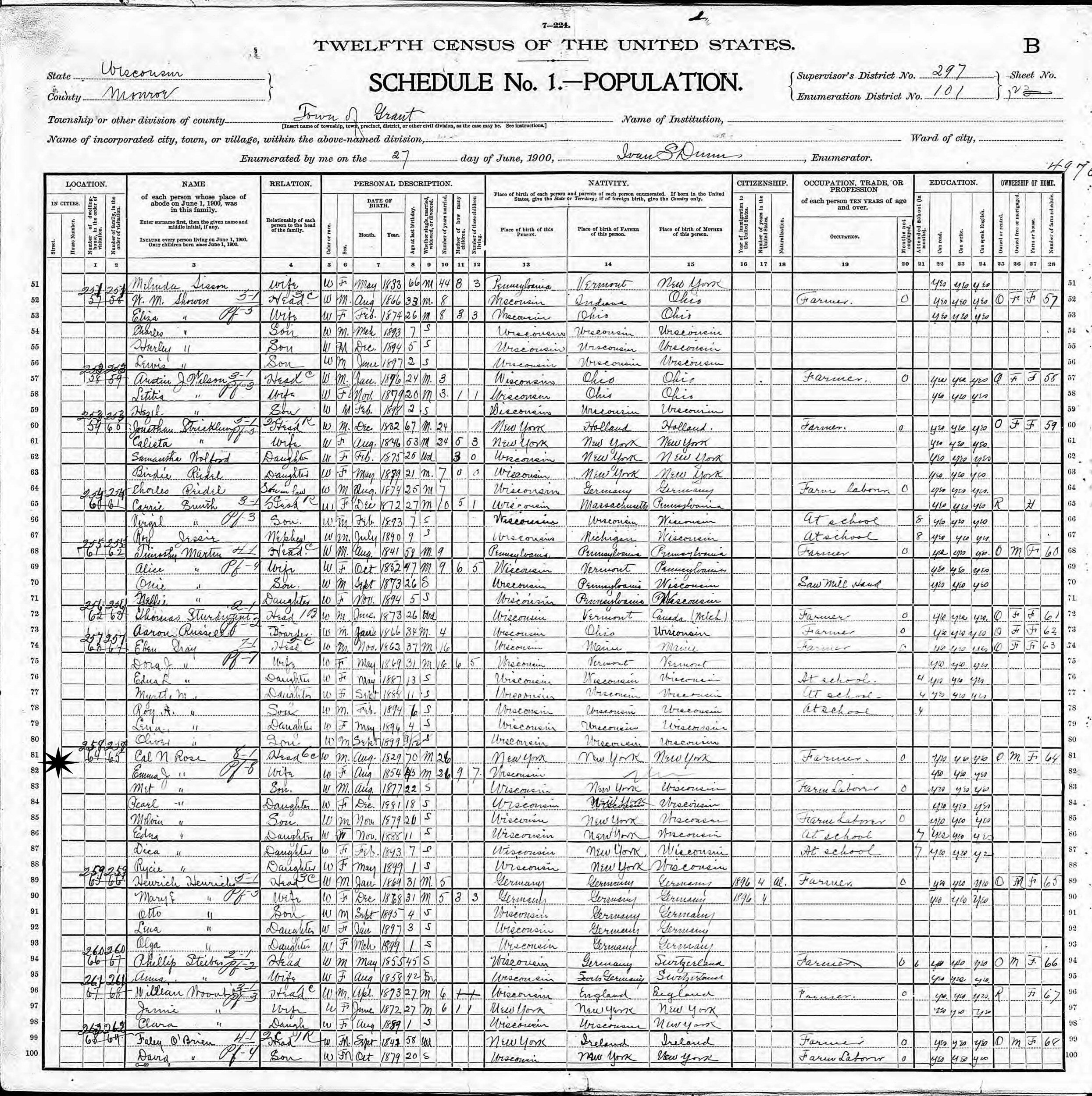 June 27, 1900 - Supervisor's District 297, Enumeration District 101, Grant, Monroe County, Wisconsin.