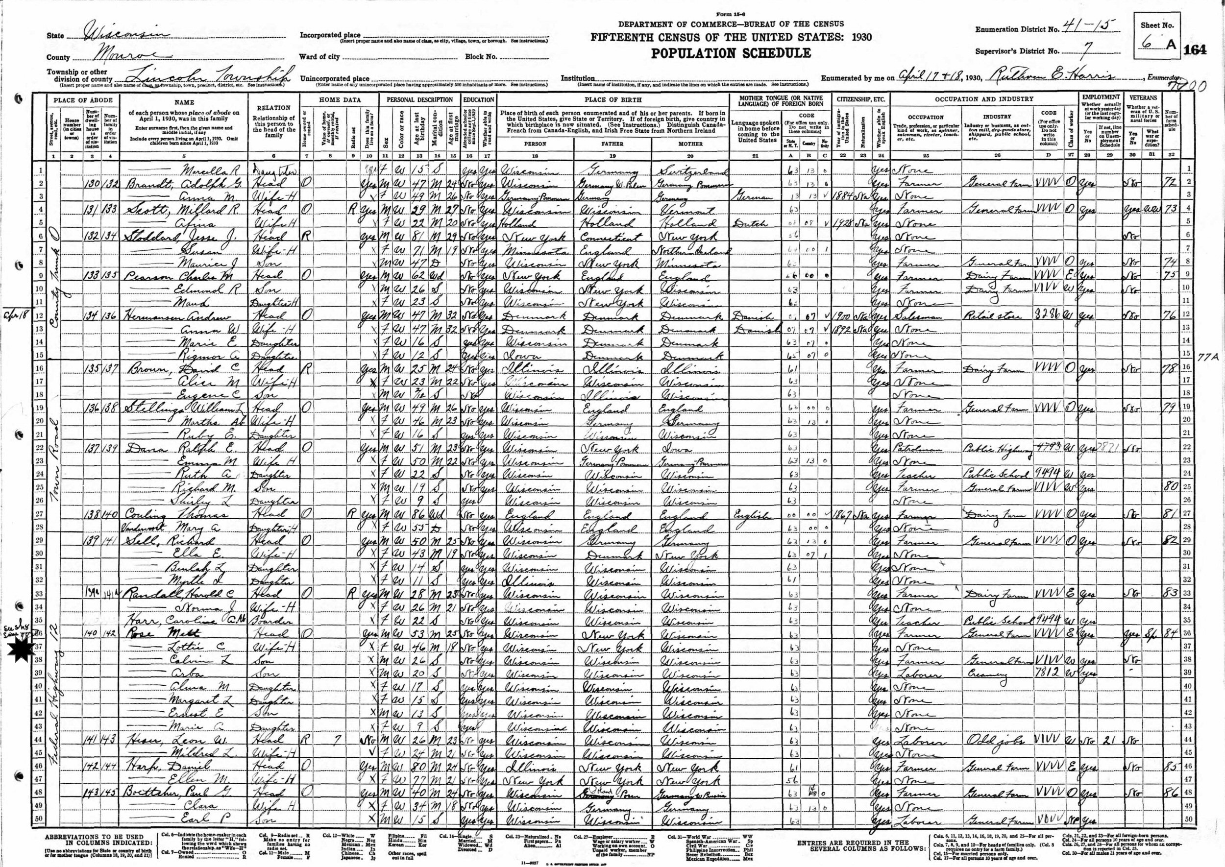April 17-18, 1930 - Federal Highway 12, Supervisor's District 7, Enumeration District 41-15, Lincoln Township, Monroe County, Wisconsin.