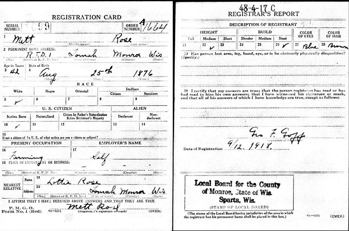 September 12, 1918 - R.F.D. 1, Tomah, Monroe County, Wisconsin.