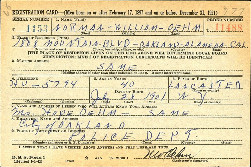 Notes for NORMAN WILLIAM OEHM: