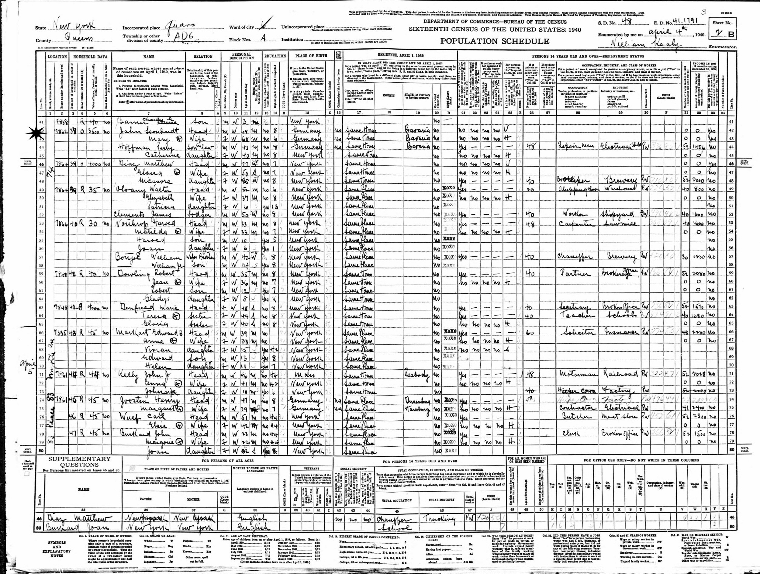 April 4, 1940 - 7862 74th, Assembly District 6, Block A, Supervisor's District 48, Enumeration District 41-1791, Queens, Queens County, New York (w/in-laws).
